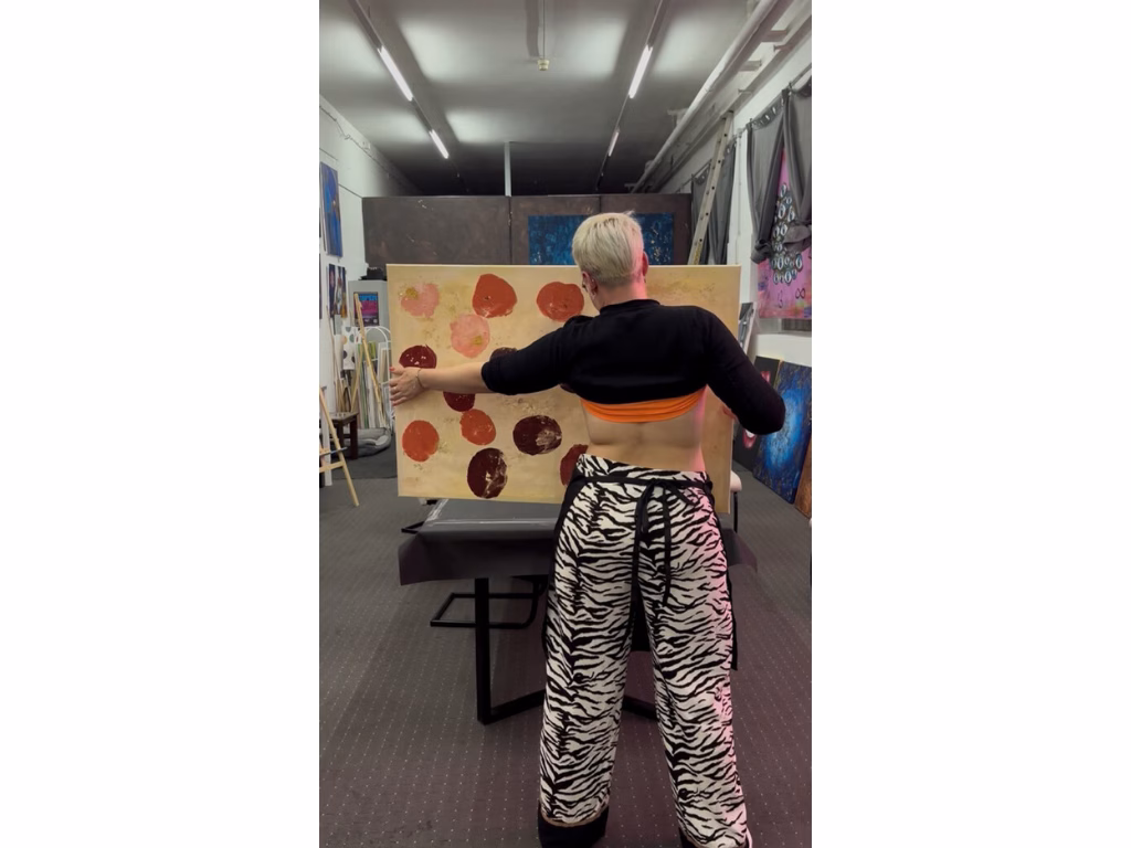 Wählt aus verschiedenen Motiven wie Frida Kahlo-Collagen, Disco Fruits, Abstraktes Malen, Brustabdrücken mit Blattgold & Glitzer – oder bringt eure ganz eigenen Ideen mit. 🌈