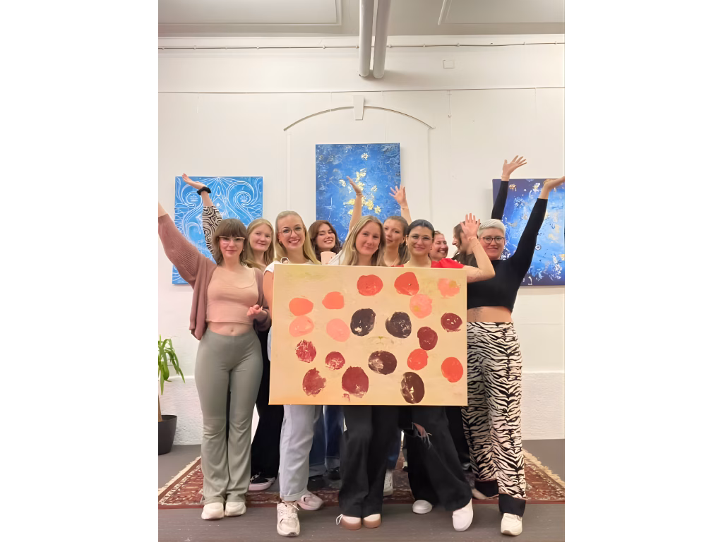 Ob ihr alle gemeinsam auf eine große Leinwand malt oder jede euer eigenes Kunstwerk gestaltet – wir planen euer Event ganz nach euren Vorstellungen.
