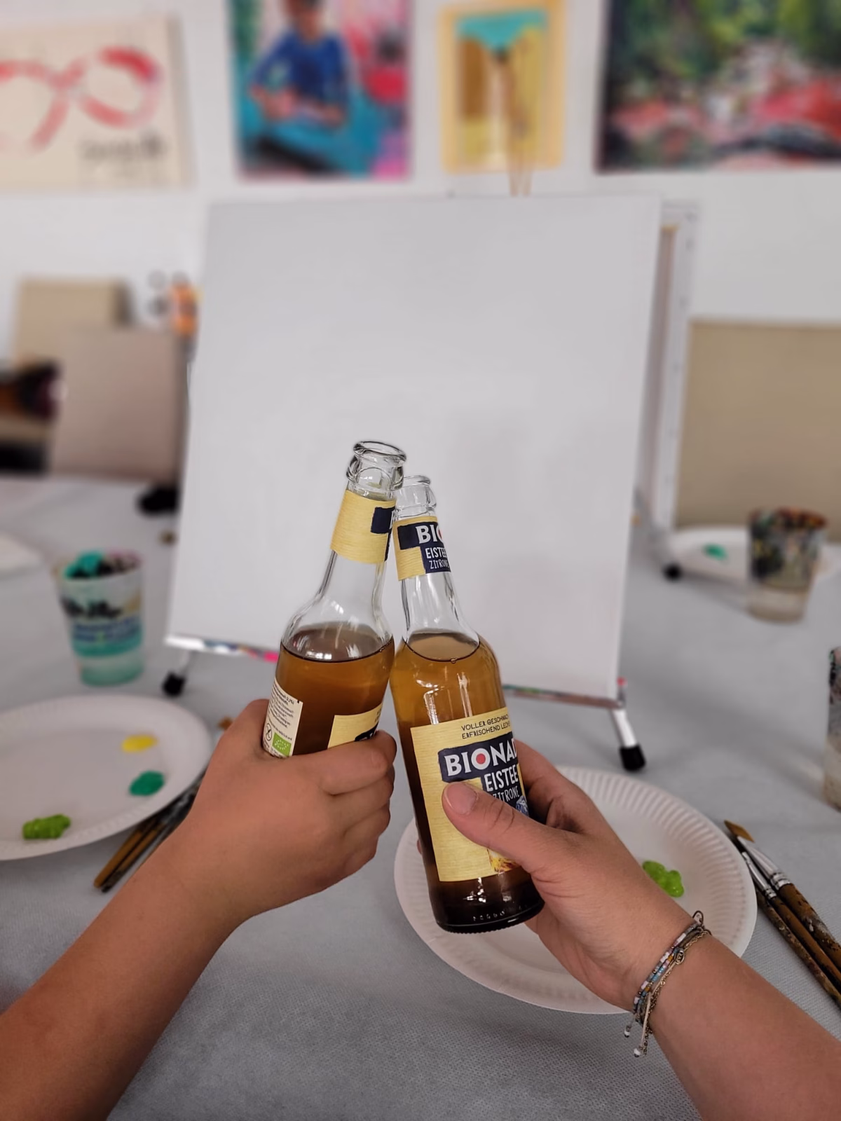 Unter künstlerischer Begleitung entstehen durch Acrylfarben, Stifte und kleine Details individuelle Kunstwerke, die Symbol für Verbundenheit und gemeinsame Zeit sind.