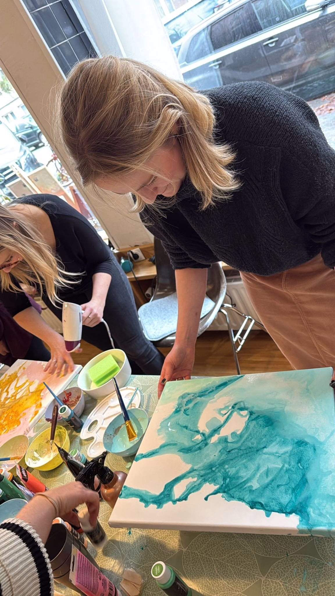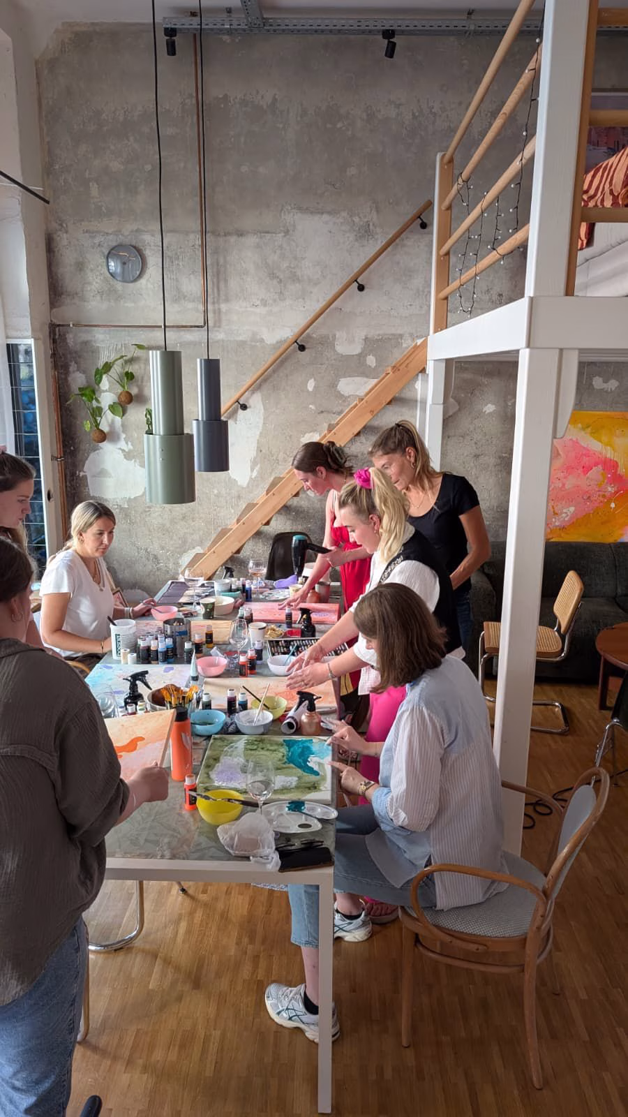„In Color We Flow“ steht für Leichtigkeit, gute vibes und einen coolen Abend in Gemeinschaft 💃🏼👯♂️ – Das Paint and Drink Format ist ein lockeres farbenfrohes Erlebnis in Hamburg für Gruppen, die gemeinsam lachen, anstoßen und kreativ sein möchten. Perfekt für Junggesellinnenabschiede, Geburtstage, Mädelsabende, Team Events oder besondere Anlässe, bei denen der Spaß im Vordergrund steht – nicht Perfektion oder künstlerischer Anspruch.