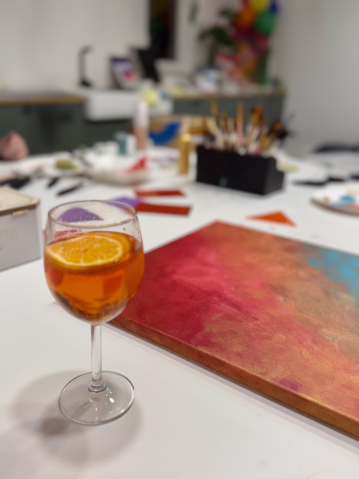 In diesem 1,5-stündigen Sip & Paint Workshop bemalt ihr euer eigenes Wein- oder Aperolglas – entspannt, ohne Vorkenntnisse und mit persönlicher Anleitung.